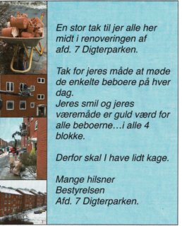 Derfor betyder det ekstra meget for os, når afdelingsbestyrelsen anerkender håndværkerne og byggeledelsen med kage og et personligt takkebrev – en gestus, vi sætter stor pris på. Det glæder os, at vores tilgang gør en positiv forskel for afdelingens beboere.